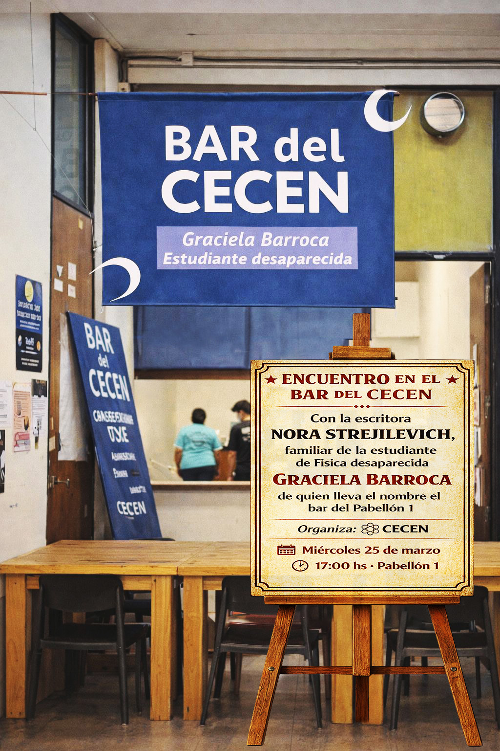 Re-inauguración del Bar Graciela Barroca, detenida desaparecida y estudiante de Ciencias Exactas hasta 1977.