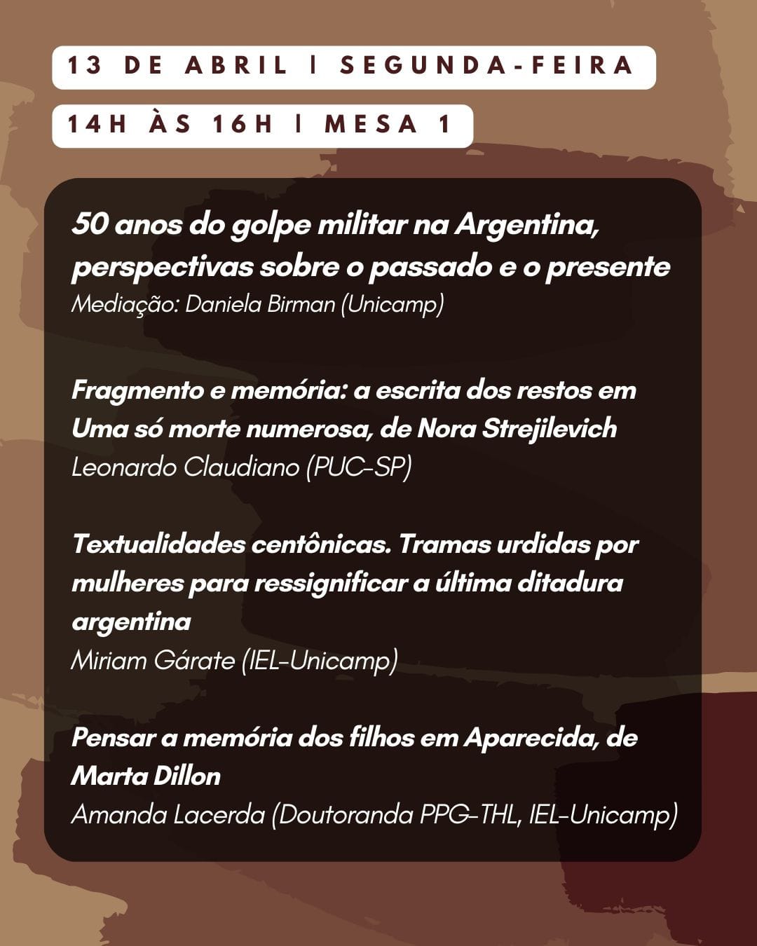 Contamos con la excelente presencia de Emilia Perassi y Nora Strejilevich quienes presentaron su libro “Una sola muerte numerosa” . Y cerramos con una Conferencia de la Dra. Ana L. Bugnone quien nos invitó a reflexionar en torno a las políticas de archivo de artistas, accesibilidad y democratización.